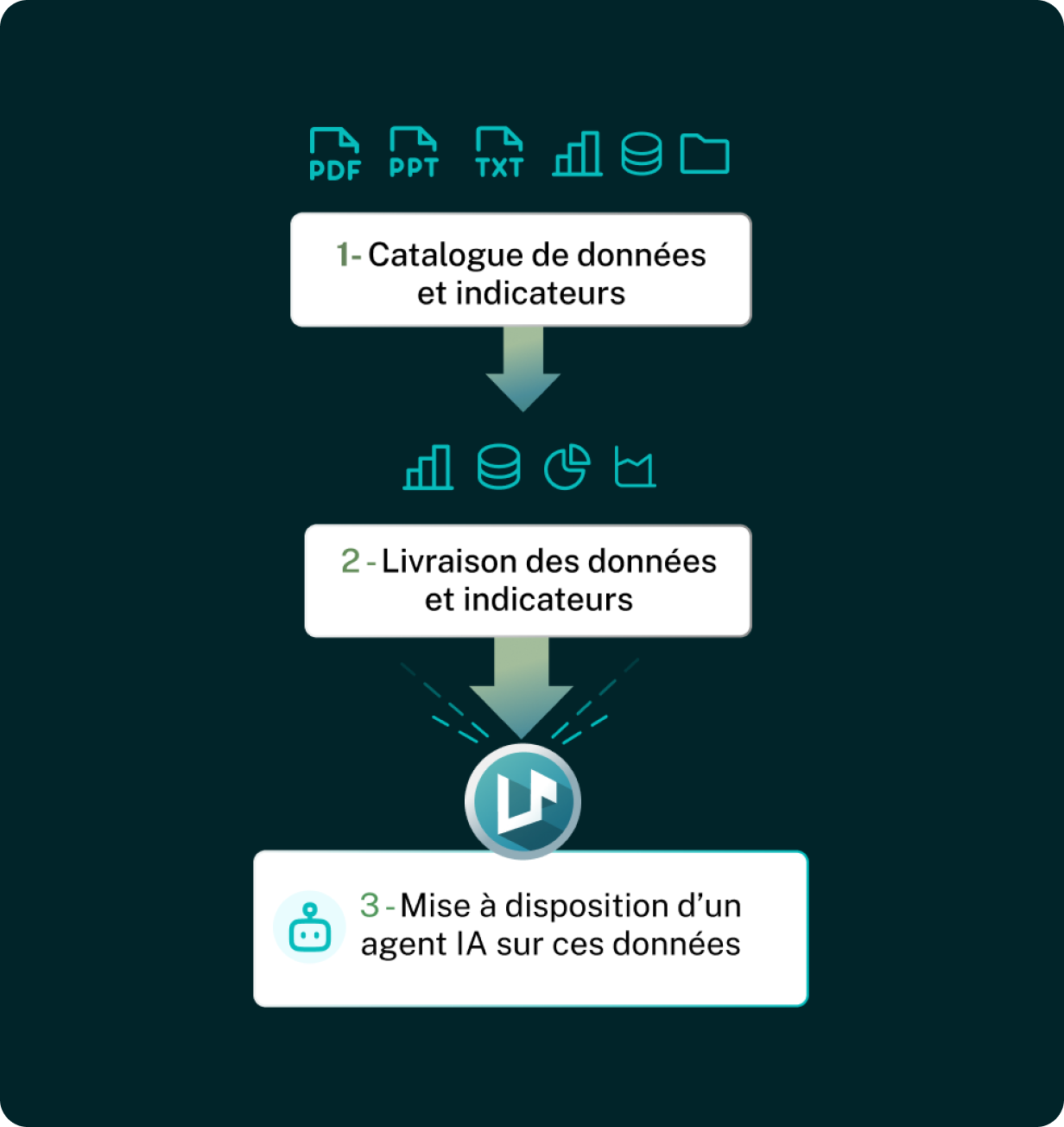 Notre IA traite vos données en les analysant et structurant pour une exploitation immédiate via Excel, base interne ou connexion automatisée. Vous pouvez obtenir les données seules ou avec un agent IA qui vous aide à les explorer et utiliser efficacement dans vos recherches.